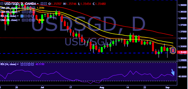 We prefer to take short position in USD/SGD around 1.3555, stop loss 1.3685 and target of 1.3506.
