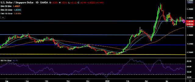 We prefer to take short position on USD/SGD only below 1.4210, stop loss at 1.4252 and target of 1.4150.