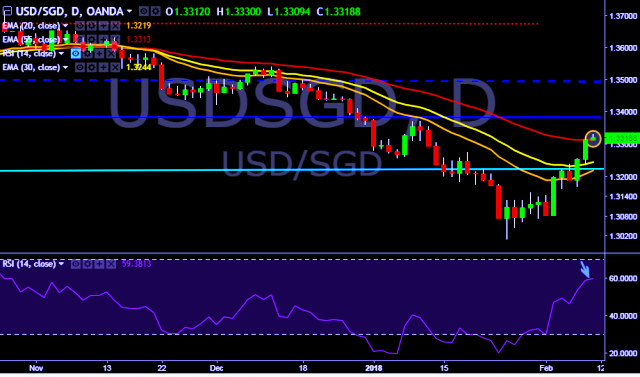 We prefer to take long position in USD/SGD around 1.3290, stop loss 1.3234 and target of 1.3438.