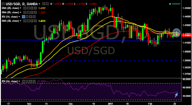 We prefer to take long position in USD/SGD only above 1.4205, stop loss at 1.4170 and target of 1.4327.