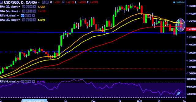 We prefer to take short position in USD/SGD around 1.4200, stop loss 1.4297 and target of 1.4152/1.4112.