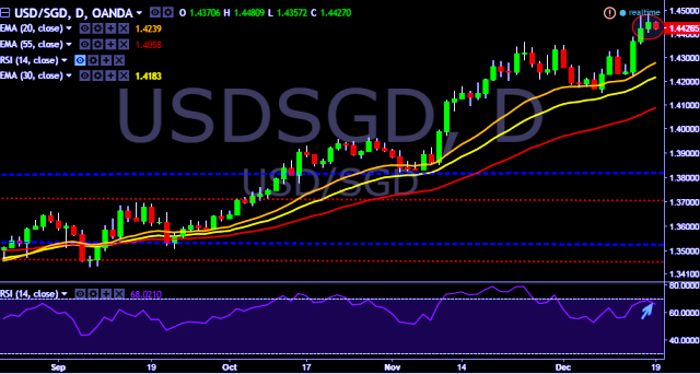 We prefer to go short on USD/SGD around 1.4430, stop loss at 1.4489 and target of 1.4357/1.4305.