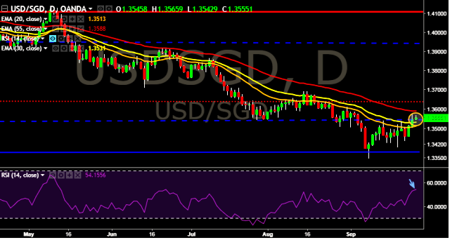 We prefer to take long position in USD/SGD around 1.3550, stop loss 1.3502 and target of 1.3622.