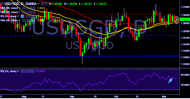 We prefer to take short position on USD/SGD only below 1.3610, stop loss at 1.3652 and target of 1.3510.
