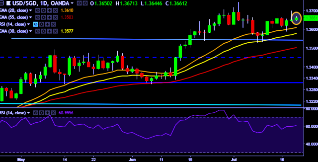 We prefer to take long position on USD/SGD around 1.3665, stop loss at 1.3640 and target of 1.3692/1.3745.