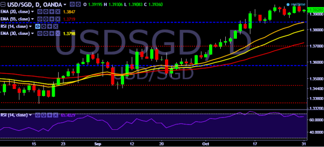 We prefer to go long on USD/SGD around 1.3920 with stop loss at 1.3876 and target of 1.3964/1.4045.