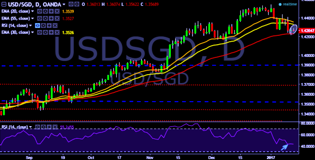 We prefer to take long position in USD/SGD only above 1.4292, stop loss 1.4216 and target of 1.4409.