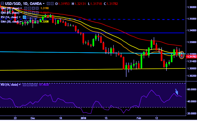 We prefer to take short position on USD/SGD only below 1.3165, stop loss at 1.3255 and target of 1.3090/1.3005.