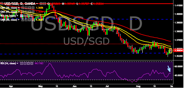 We prefer to take short position in USD/SGD around 1.3595, stop loss 1.3622 and target of 1.3435.