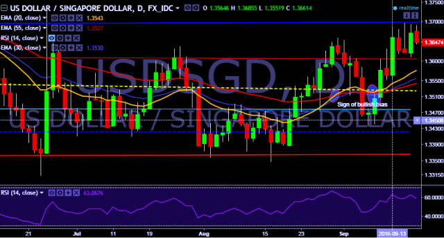 - USD/SGD is currently trading around 1.3646 marks.