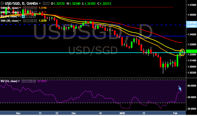 We prefer to take long position in USD/SGD around 1.3225, stop loss 1.3160 and target of 1.3302.