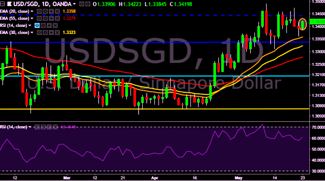 We prefer to take long position on USD/SGD around 1.3405, stop loss 1.3358 and target of 1.3482/1.3510.