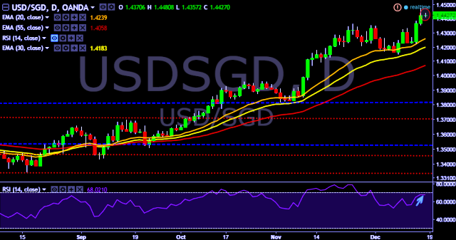 We prefer to go long on USD/SGD only above 1.4443, stop loss at 1.4357 and target of 1.4481/1.4533.