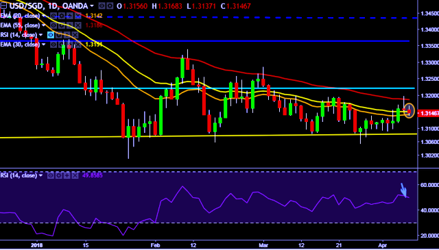 We prefer to take short position on USD/SGD around 1.3150, stop loss at 1.3202 and target of 1.3110/.1.3052.