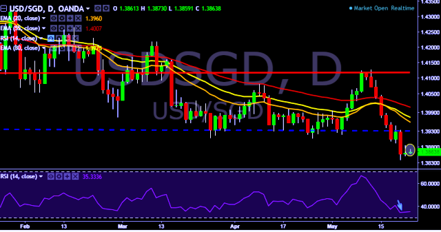 We prefer to take short position in USD/SGD only below 1.3850, stop loss 1.3910 and target of 1.3776.