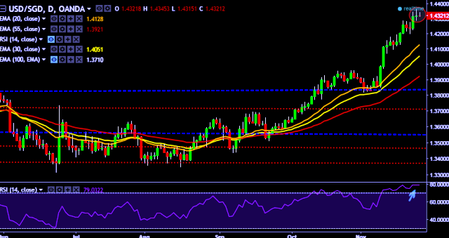 We prefer to go short on USD/SGD around 1.4335 with stop loss at 1.4365 and target of 1.4201.