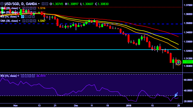 We prefer to take short position in USD/SGD around 1.3120, stop loss 1.3148 and target of 1.3005/1.2977.