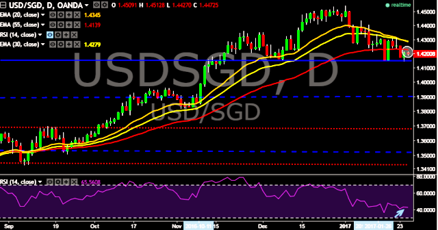 We prefer to take long position in USD/SGD only above 1.4212, stop loss 1.4147 and target of 1.4318.