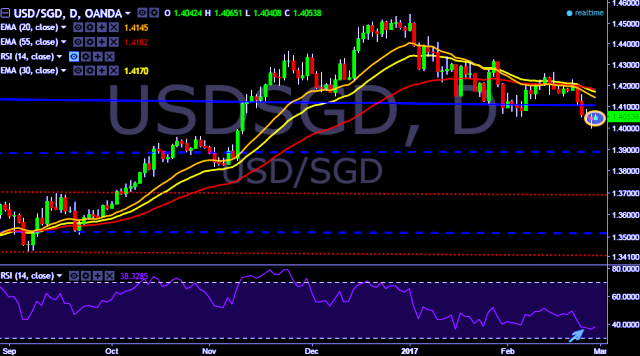 We prefer to take short position in USD/SGD only below 1.4042, stop loss at 1.4092 and target of 1.4000/1.3972.