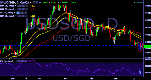 We prefer to take short position in USD/SGD only below 1.3908, stop loss 1.3988 and target of 1.3851.