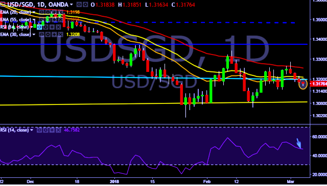 We prefer to take short position on USD/SGD only below 1.3150, stop loss at 1.3232 and target of 1.3090/1.3005.