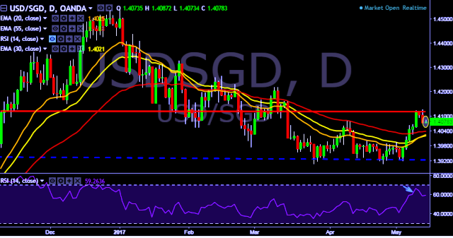 We prefer to take short position in USD/SGD only below 1.4072, stop loss 1.4128 and target of 1.4027.