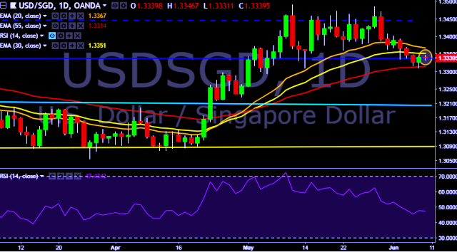 We prefer to take short position on USD/SGD around 1.3340, stop loss 1.3370 and target of 1.3255.