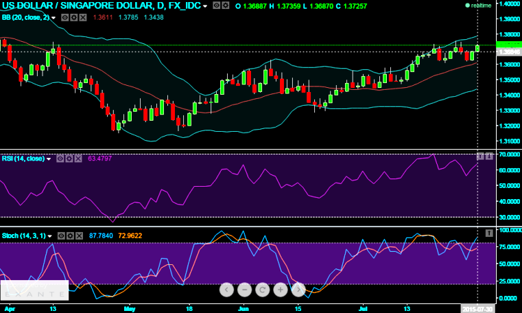 We've been reiterating that the prevailing uptrend for USD/SGD seems to be exhausted in an attempt to evidence 3 month's high but looking weaker as it was unable to sustain the same.