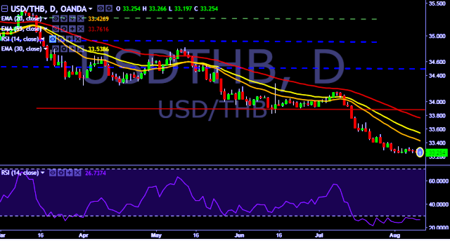 We prefer to take short position in USD/THB around 33.26, stop loss 33.35 and target of 33.01.
