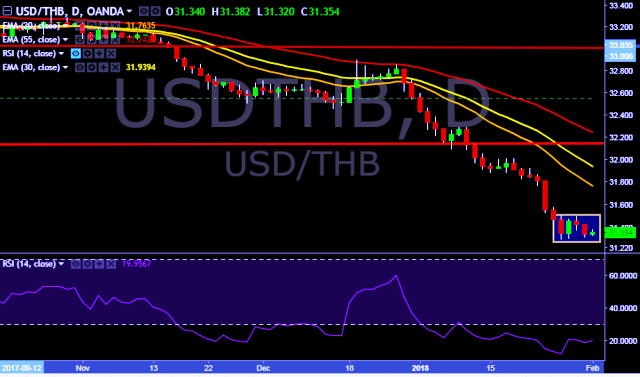 We prefer to take short position in USD/THB only below 31.30, stop loss at 31.50 and target of 31.11/31.01.
