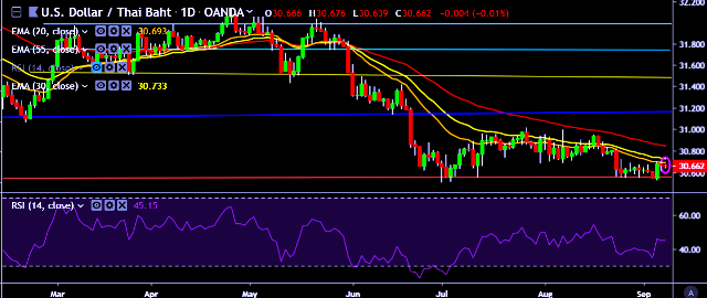 We prefer to take long position on USD/THB only above 30.70, stop loss at 30.55 and target of 30.90/31.20.