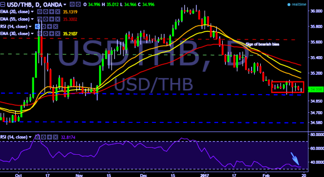 We prefer to take short position in USD/THB only below 34.99, stop loss 35.07 and target of 34.85.