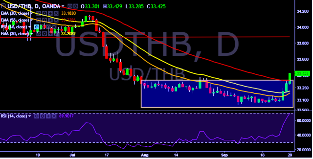 We prefer to take long position on USD/THB around 33.35, stop loss at 33.20 and target of 33.52/33.77 mark.