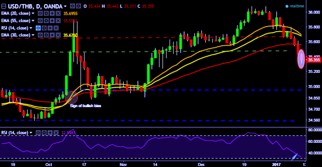 - USD/THB is currently trading around 35.35 marks.