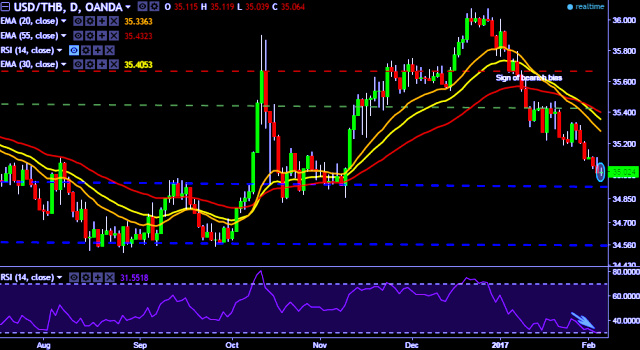 We prefer to take short position in USD/THB around 35.05, stop loss 35.11 and target of 34.85/34.72.