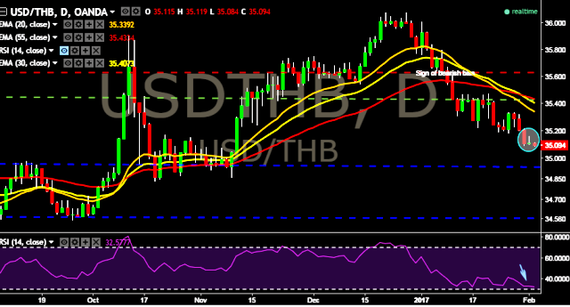 We prefer to take short position in USD/THB around 35.10, stop loss 35.21 and target of 34.85.