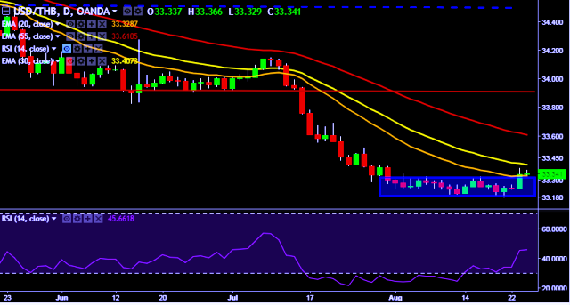 We prefer to take long position in USD/THB around 33.32, stop loss at 33.20 and target of 33.52.