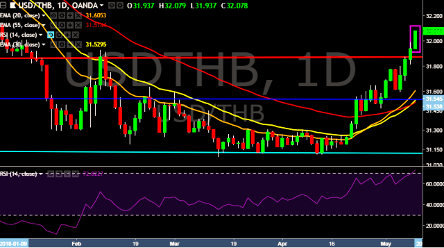 We prefer to take long position in USD/THB around 32.02, stop loss at 31.85 and target of 32.28/32.60.