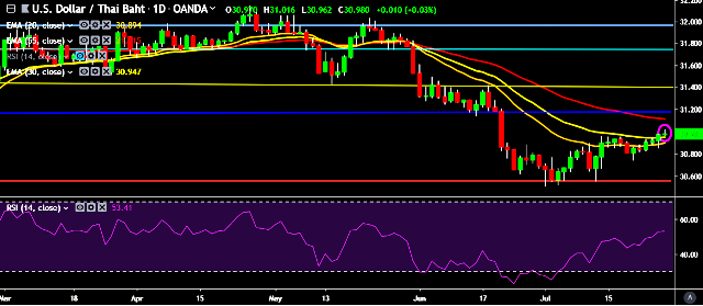 We prefer to take long position on USD/THB around 30.95, stop loss at 30.85 and target of 31.20/31.50.