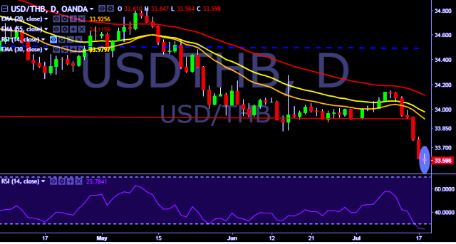 We prefer to take short position in USD/THB around 33.60, stop loss 33.77 and target of 33.01.