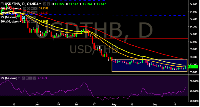 We prefer to take long position on USD/THB only above 33.15, stop loss at 33.03 and target of 33.36 mark.