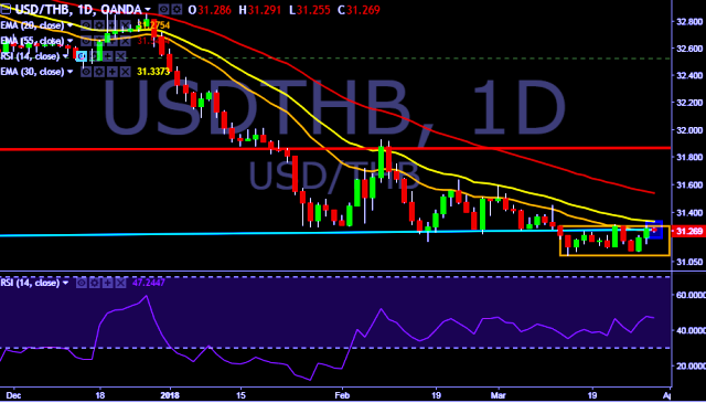 We prefer to take long position in USD/THB only above 31.30, stop loss at 31.08 and target of 31.59/31.75.