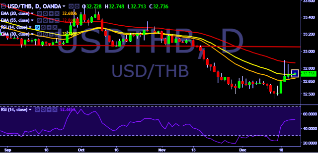 We prefer to take long position in USD/THB only above 32.76, stop loss at 32.64 and target of 32.92.