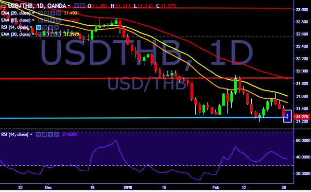 We prefer to take long position in USD/THB around 31.29, stop loss at 31.18 and target of 31.52.