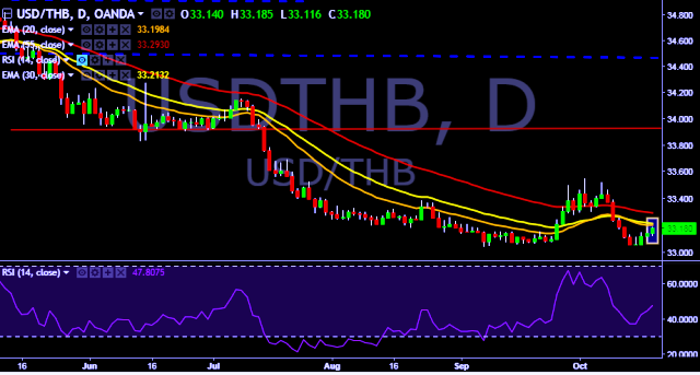 We prefer to take long position on USD/THB only above 33.18, stop loss at 33.07 and target of 33.38/33.46 mark.