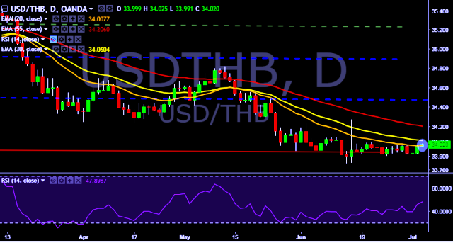 We prefer to take long position in USD/THB around 34.00, stop loss 33.90 and target of 34.27.