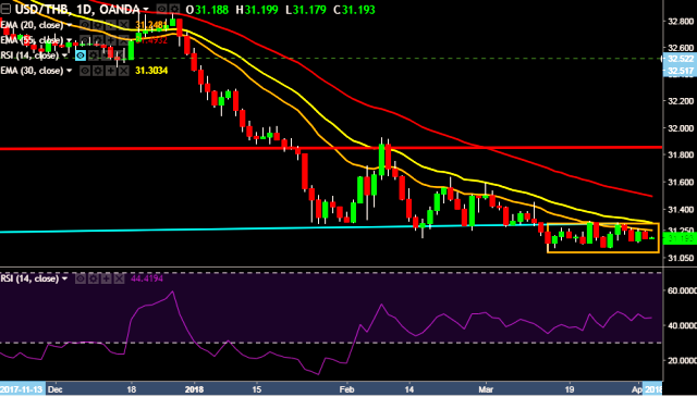 We prefer to take long position in USD/THB only above 31.30, stop loss at 31.10 and target of 31.50/31.75.
