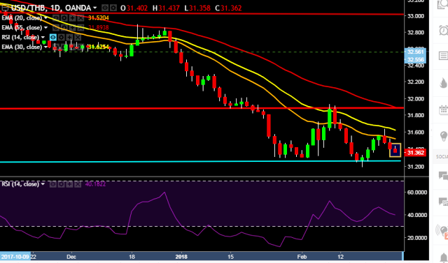 We prefer to take short position in USD/THB around 31.40, stop loss at 31.65 and target of 31.11.