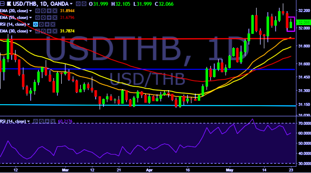 We prefer to take long position in USD/THB only above 32.10, stop loss at 31.97 and target of 32.22/32.48.