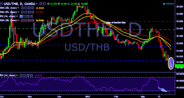 We prefer to take long position in USD/THB around 34.40, stop loss at 34.32 and target of 34.58.
